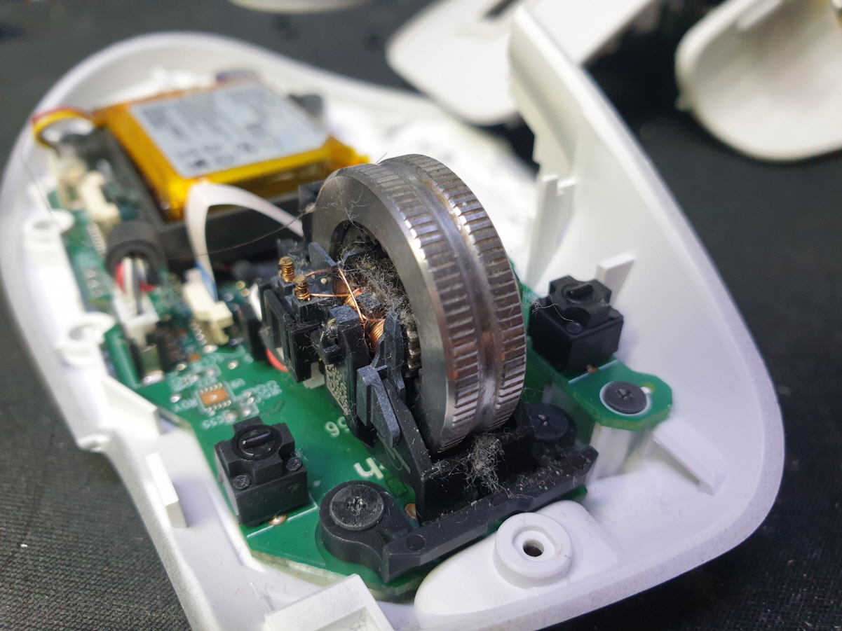 휠센서불량으로 휠센서교체수리 진행합니다. 휠센서불량은 휠팅김, 스크롤시 위아래로 잘 안움직이거나 아예
