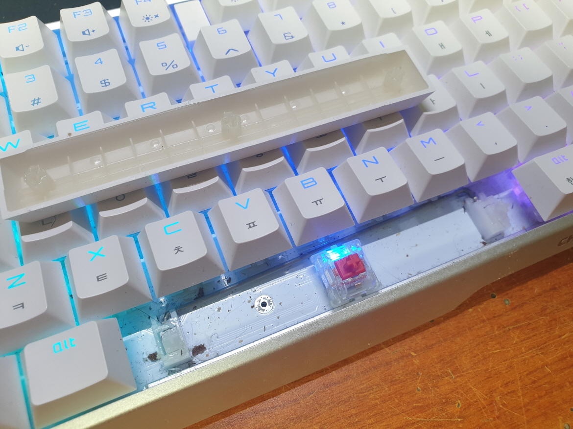 윈도우키 FN MENU 키 안눌리는 문제로 수리 진행합니다. 추가로 스페이스바 스테빌라이져 축파손으로 교체 진행합니다.