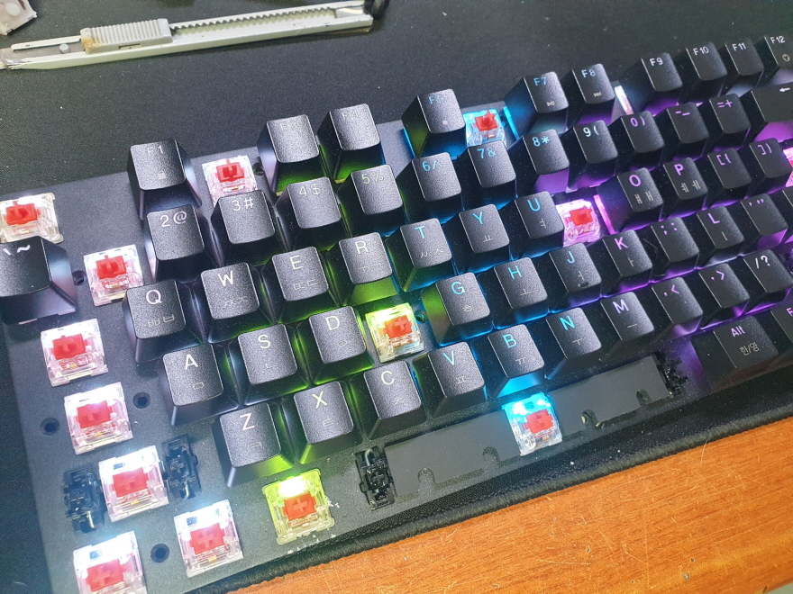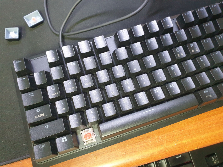 단순 스위치 파손 불량으로 교체 수리 진행합니다. 추가로 사용하지 못하는 키캡은 범용키캡으로 교체 진행합니다.