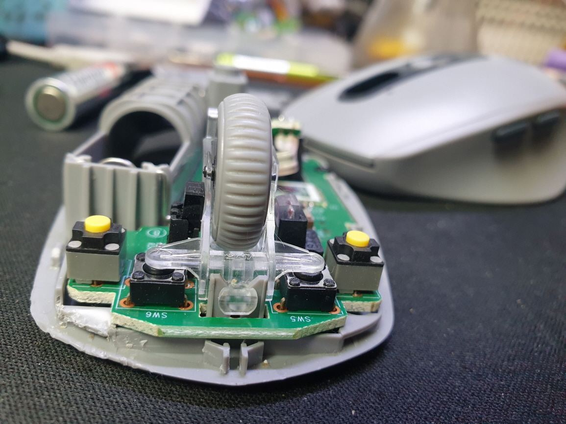 휠센서불량으로 휠센서교체수리 진행합니다. 휠센서불량은 휠팅김, 스크롤시 위아래로 잘 안움직이거나 아예 반응이 없는 경우 발생되는 현상이며 센서교체후 정상적인 사용이 가능합니다.