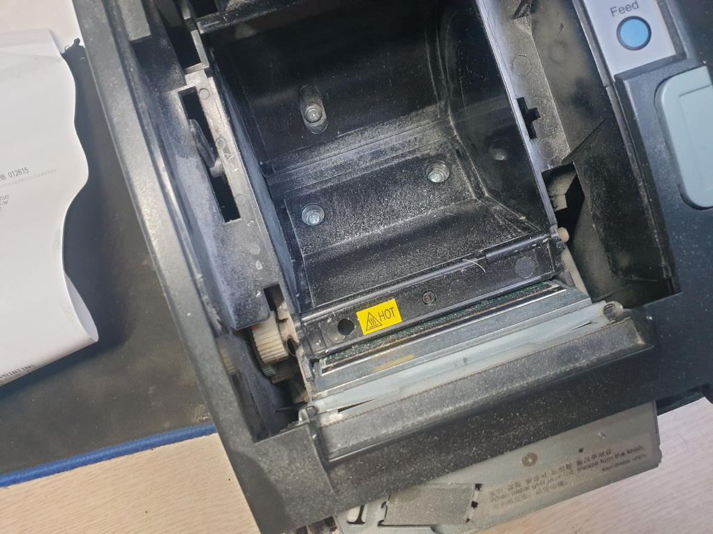 영수증 출력후 영수증컷팅 절단이 안되는 문제로 수리 진행합니다. 오토커터쪽에서 나는 냄새로 보여집니다...