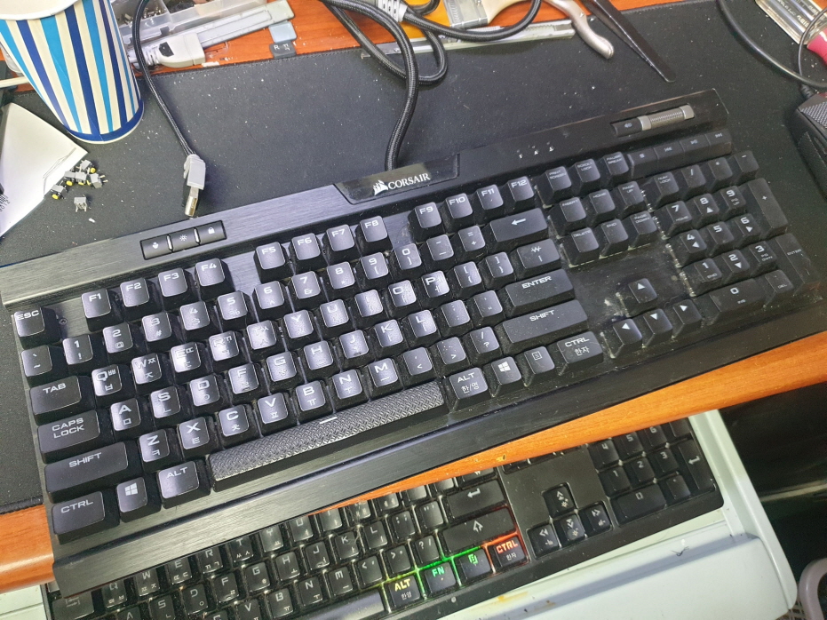 제주시 용담이동에서 키보드침수후 여러버튼이 계속눌림으로 Corsair K70 RGB MK.2 RGP0048 커세어키보드 해외직구 사설 수리 고장 AS