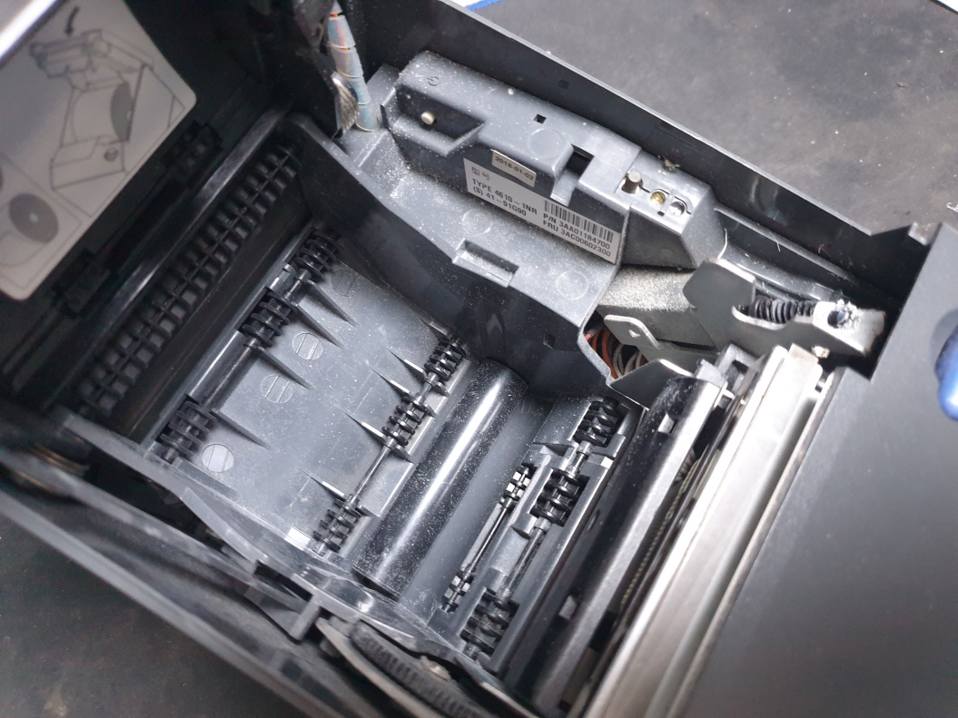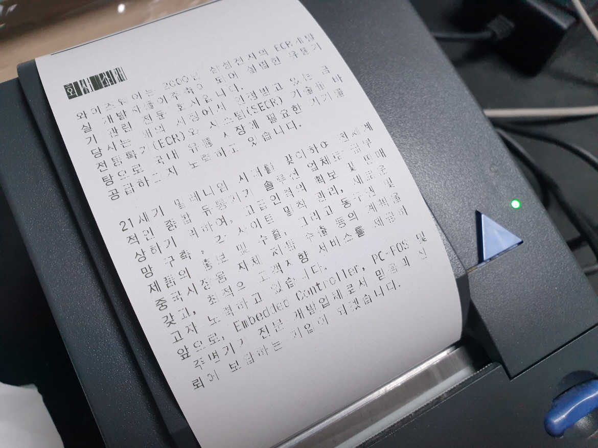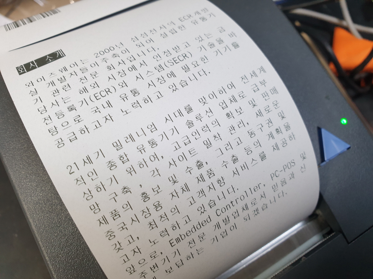 영수증 출력후 인쇄물이 흐리게 잘 보이지 않게 인쇄되는 문제로 수리 진행합니다. 해당 출력물은 인쇄헤드 손상으로 헤드 교체 진행합니다.