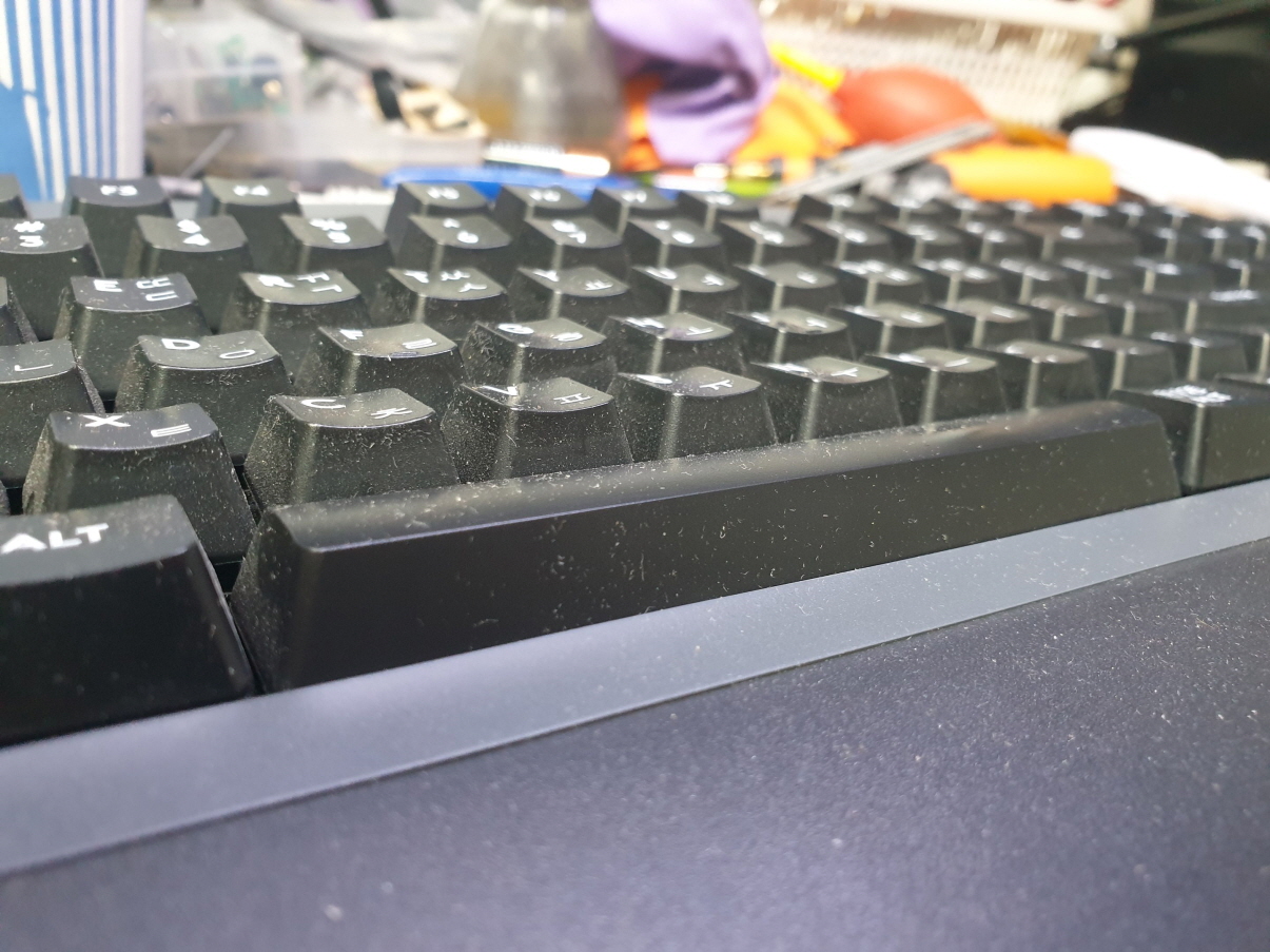 스페이스바 스테빌라이져파손불량으로 수리 진행합니다. 추가로 윈도우 및 메뉴키가 안눌리는 경우는 오른쪽 상단 조이스틱아이콘의 버튼이 윈도우/메뉴 키 방지버튼입니다. 왼쪽/오른쪽 ON/OFF 위치하시면됩니다.