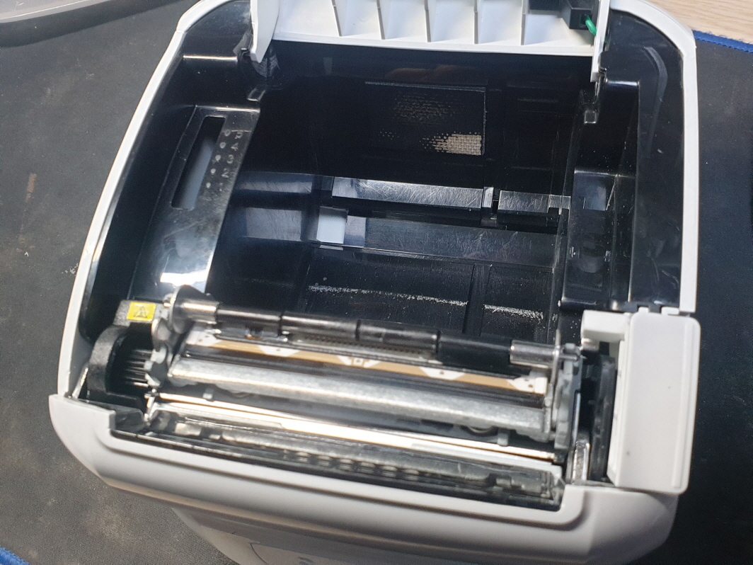 용지컷터시 뜯기쉽게 컷터가 1mm ~ 3mm정도 남기고 절단합니다. 제조사마다 남기는 정도는 차이가 있습니다...아예 절단이 안되거나 반만 절단되거나 용지만 나오고 절단이 안되고 그후로 먹통되는 증상 5mm정도 남기고 절단되는 경우 등 대부분 용지컷터불량이 많습니다. 컷터수리로 정상적인 사용이 가능합니다. 일부 제조사마다 단일커터 혹은 메카(인쇄헤드+커터+모터+커버센서+용지센서)로 구성됩니다.