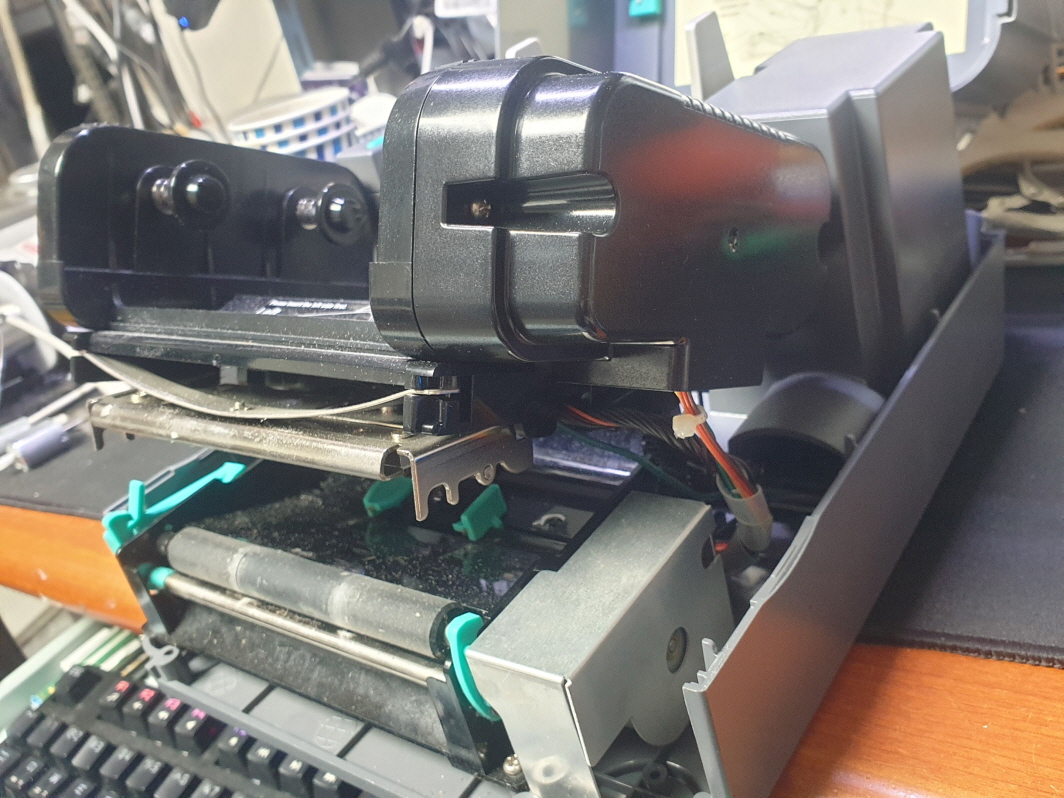 리본사용을 안하고 감열지만 사용하는 업장에서 인쇄물이 흐리게 인쇄되는 문제로 수리 진행합니다. 리본(먹지)를 사용하는 이유는 리본(먹지)를 사용안하고도 감열지로만 인쇄가 가능합니다. 단, 감열지로만 인쇄가 되는 경우 인쇄물이 오래가지못하고 흐리게 변색되거나 아예 글씨 자체가 없어지는 경우 휘발된다고해야겠습니다...리본(먹지)를 사용하는 경우 인쇄물이 5년이상 지속이 되며 어떤 리본(먹지)는 방수형태를 띠는 리본도 있습니다. 현장에 맞게 혹은 해당 시스템에 맞게 사용하시면됩니다. 리본과 라벨지 조합이 맞아야 정상적인 인쇄물을 얻을수 있습니다.