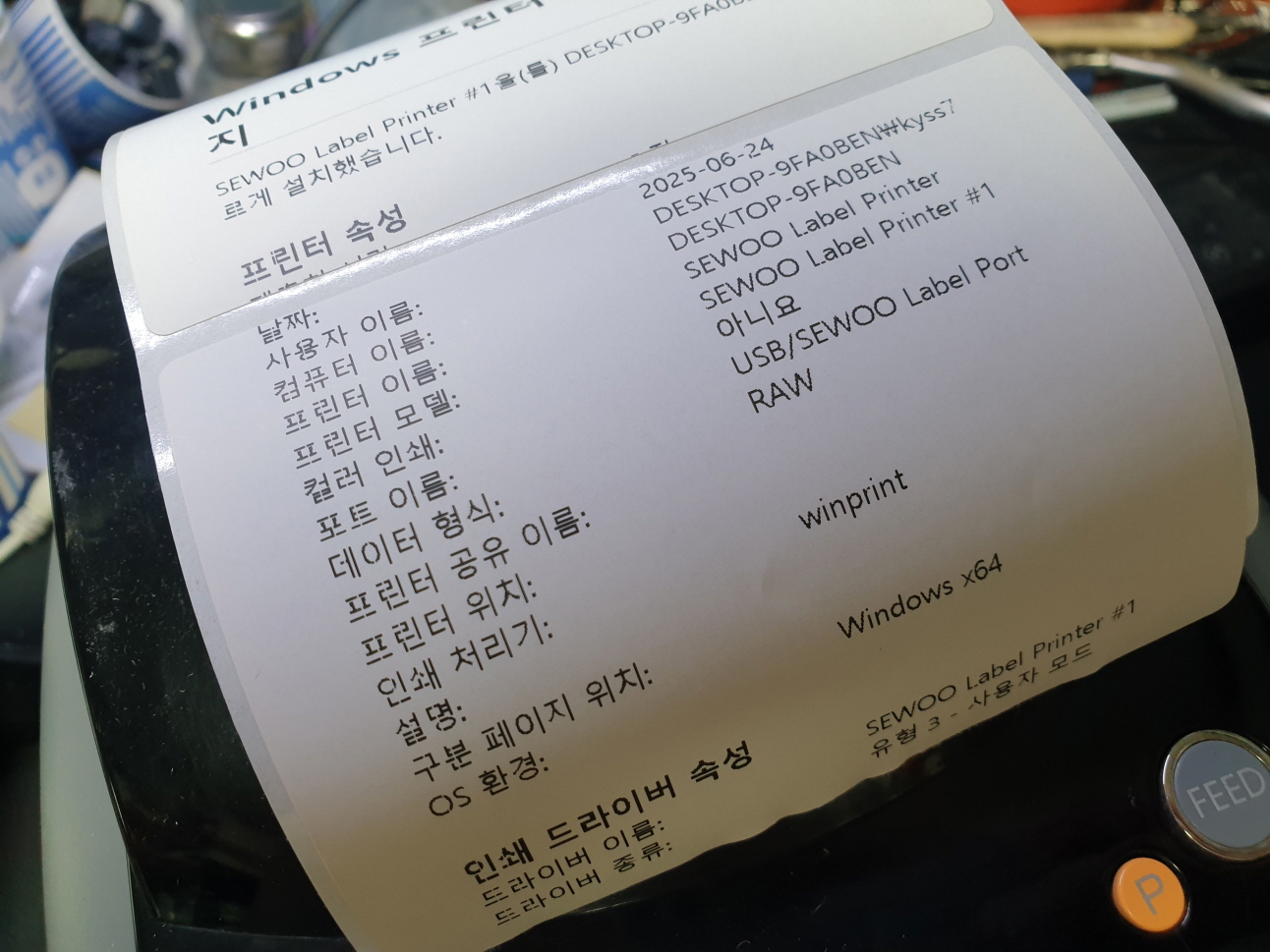 경기도 이천에서 오른쪽 하단부분 인쇄가 안됨으로 Sewoo LK-B30 유통 라벨 송장 바코드 프린터수리