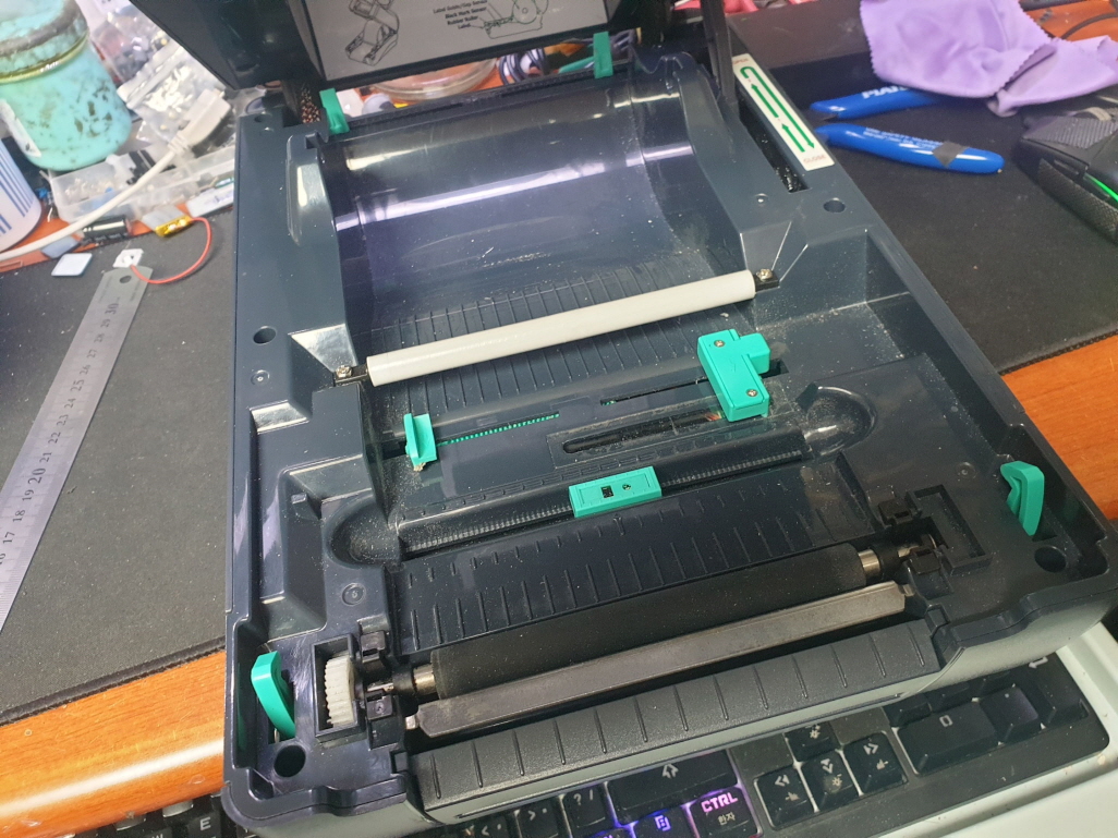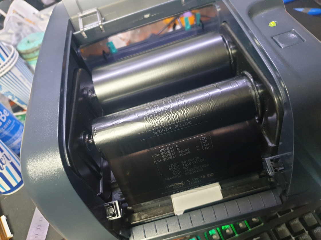 정상적으로 인쇄는 되지만 리본(먹지)가 흘러내리는 문제로 수리 진행합니다.