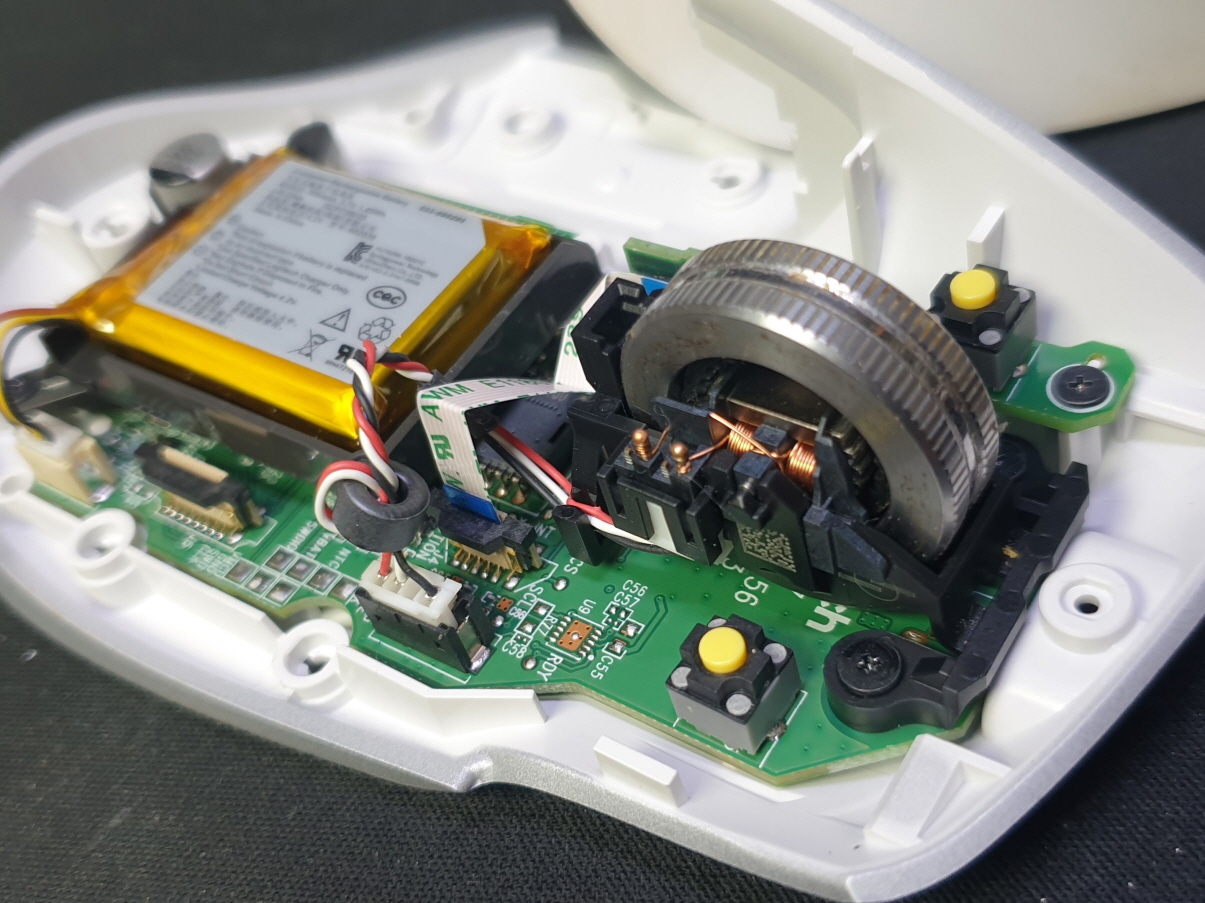 휠센서불량으로 휠센서교체수리 진행합니다. 휠센서불량은 휠팅김, 스크롤시 위아래로 잘 안움직이거나 아예 반응이 없는 경우 발생되는 현상이며 센서교체후 정상적인 사용이 가능합니다.