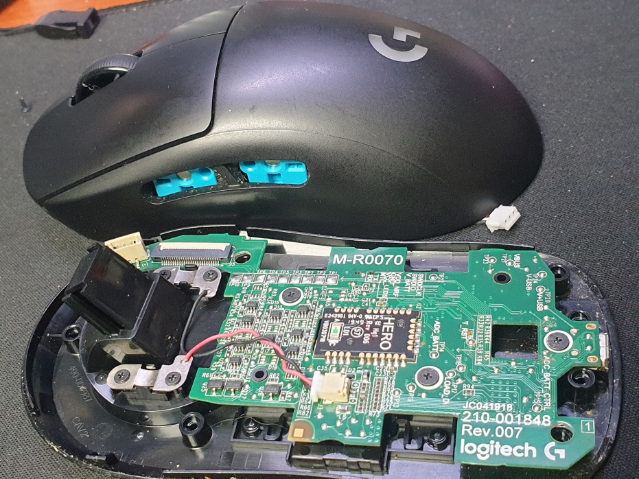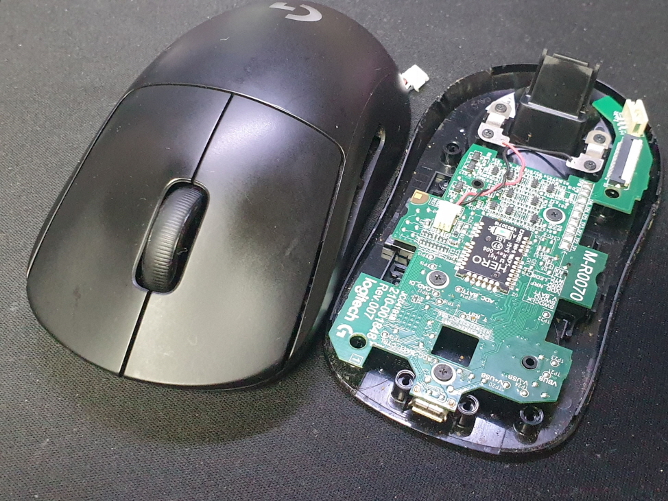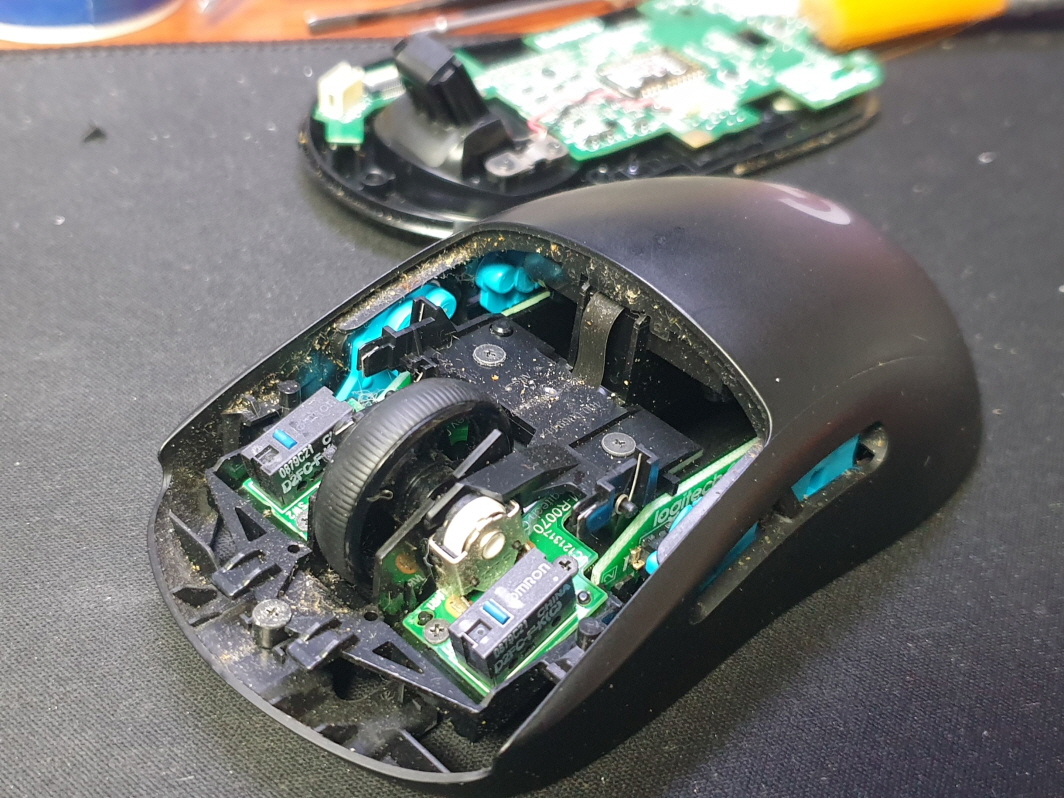 경기도 군포에서 왼쪽 좌측면 더블클릭증상으로 Logitech G Pro M-R0070 로지텍 무선 마우스 사설 수리 AS