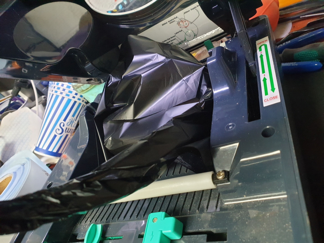 라벨 출력시 리본과 함께 딸려 나오는 문제로 수리 진행합니다.