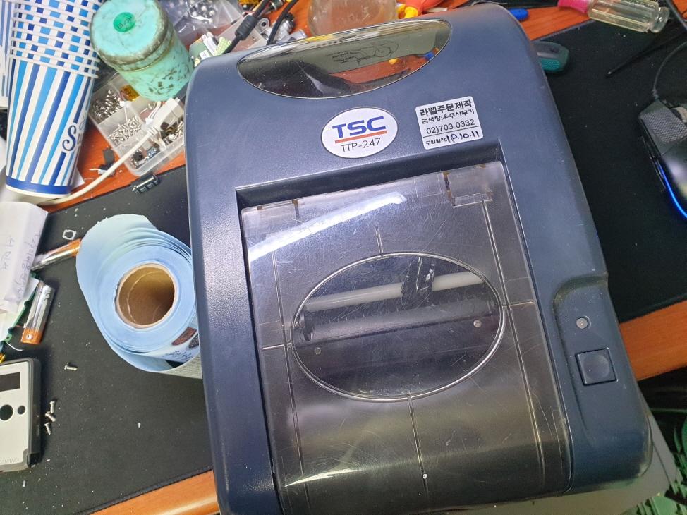 전남 담양군에서 리본이 같이 라벨지하고 출력됨으로 TSC TTP-247 유통 라벨 송장 바코드 프린터수리