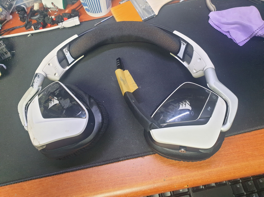 커세어헤드셋 무선 제품으로 헤드 플라스틱파손으로 교체 수리 진행합니다. 추가로 마이크붐도 함께 교체합니다.