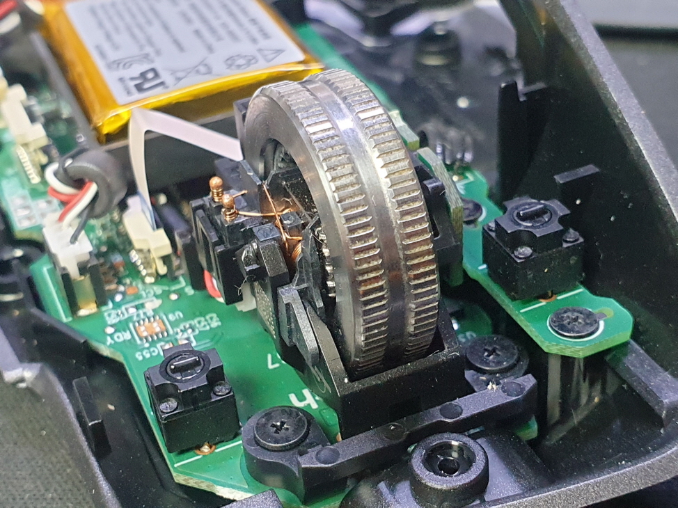 휠센서불량으로 휠센서교체수리 진행합니다. 휠센서불량은 휠팅김, 스크롤시 위아래로 잘 안움직이거나 아예 반응이 없는 경우 발생되는 현상이며 센서교체후 정상적인 사용이 가능합니다.