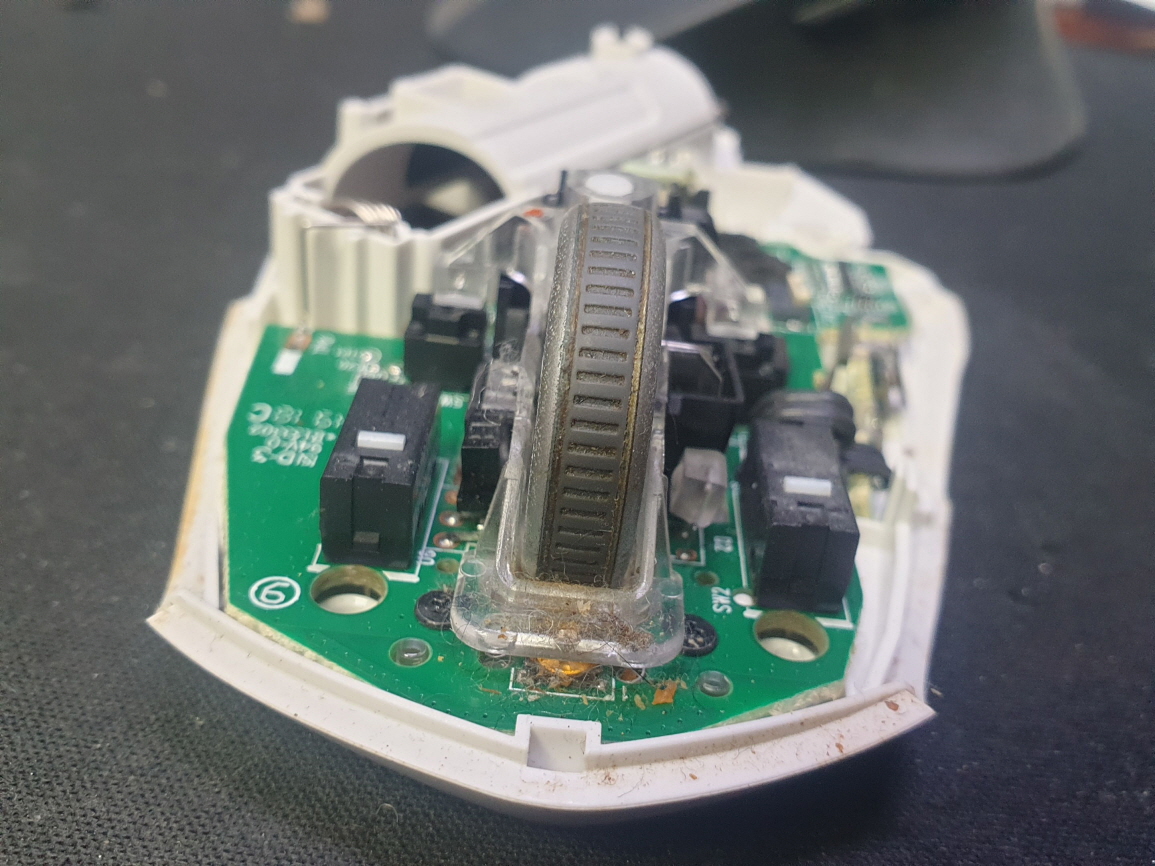 휠센서불량으로 휠센서교체수리 진행합니다. 휠센서불량은 휠팅김, 스크롤시 위아래로 잘 안움직이거나 아예 반응이 없는 경우 발생되는 현상이며 센서교체후 정상적인 사용이 가능합니다.