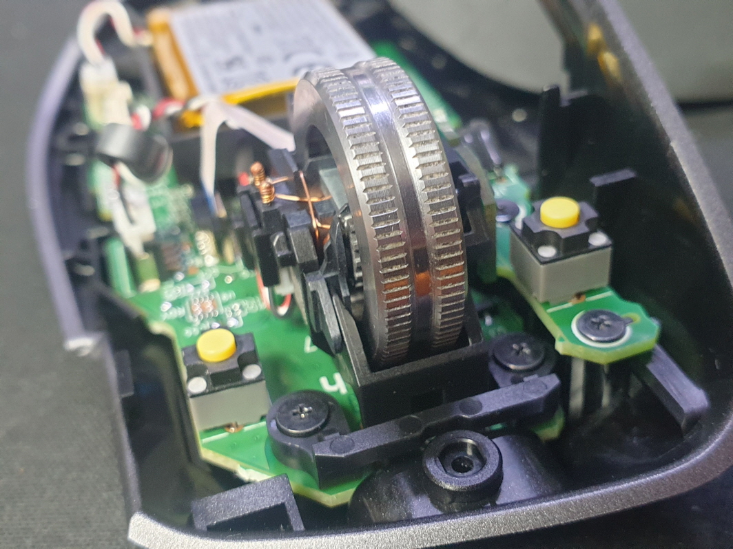 휠센서불량으로 휠센서교체수리 진행합니다. 휠센서불량은 휠팅김, 스크롤시 위아래로 잘 안움직이거나 아예 반응이 없는 경우 발생되는 현상이며 센서교체후 정상적인 사용이 가능합니다.