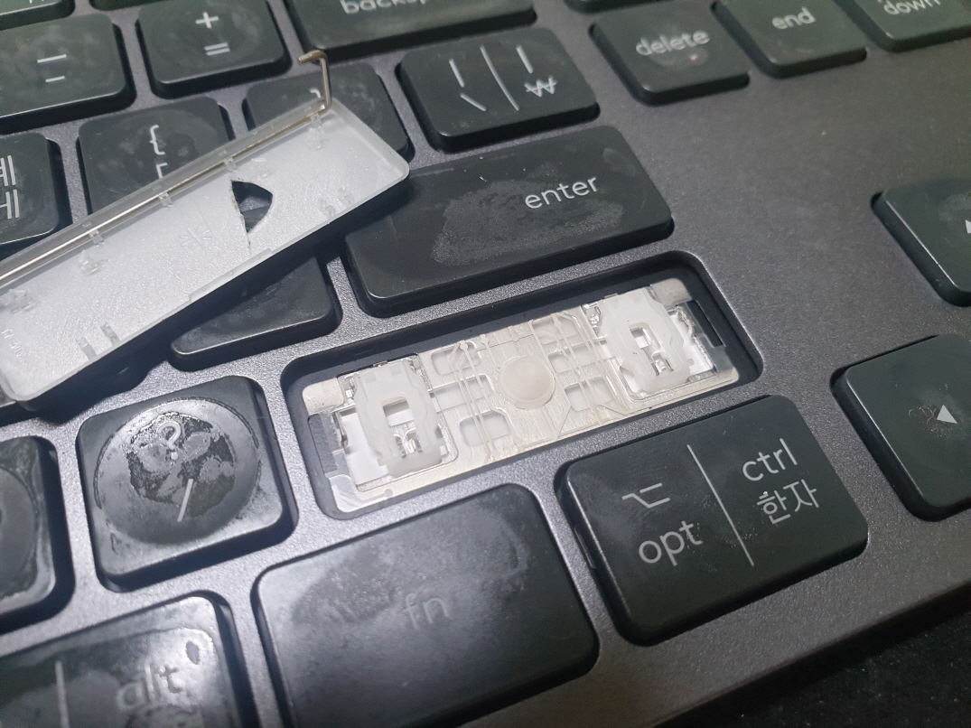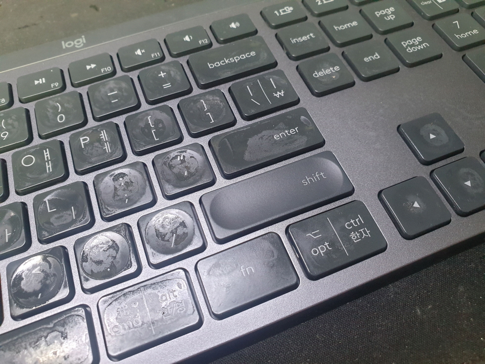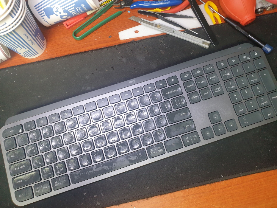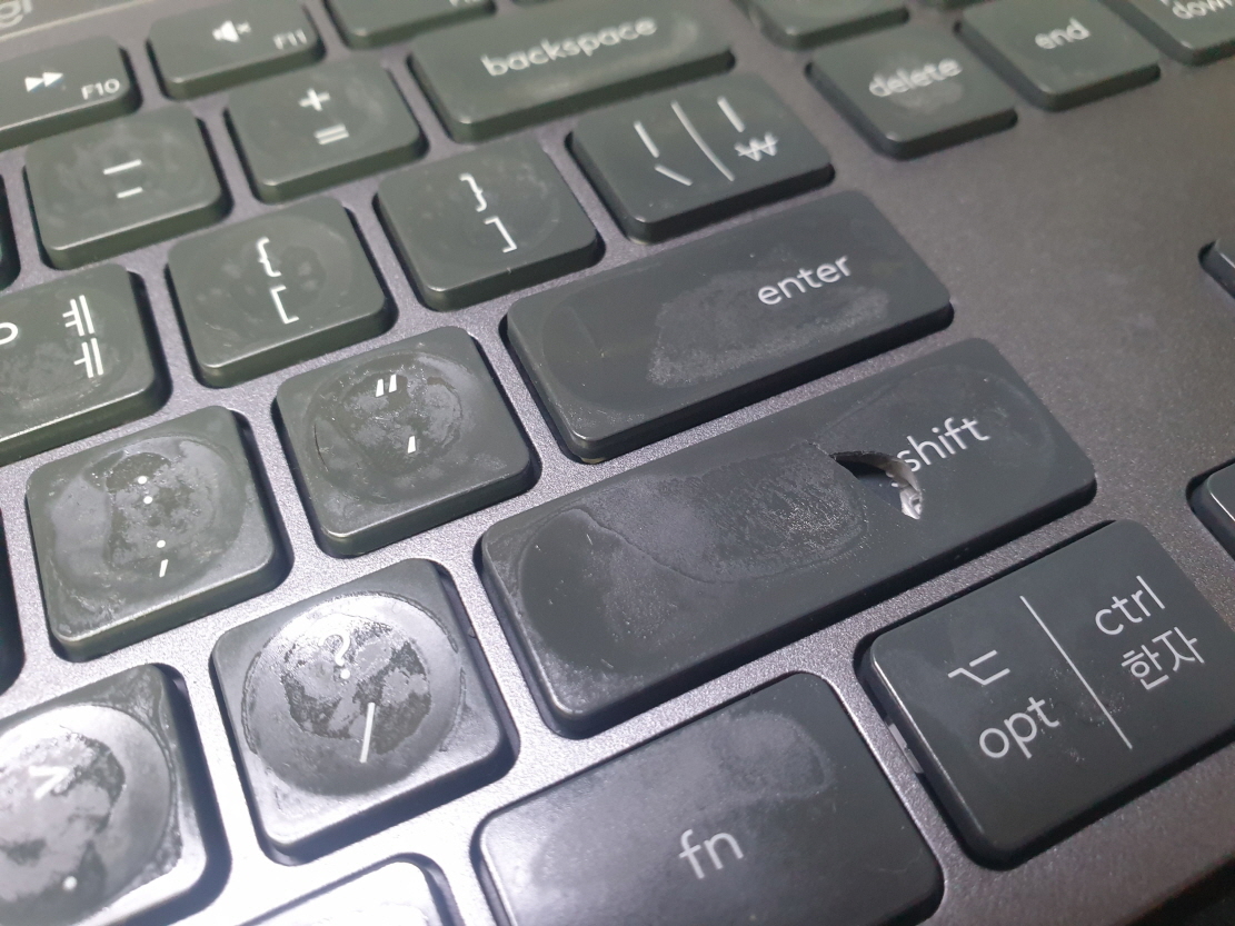 서울 종로구에서 오른쪽SHIFT키파쇄로 택배 입고된 Logitech MX KEYS 로지텍 무선키보드 펜타그래프 병행수입 직구 사설 수리 고장 AS