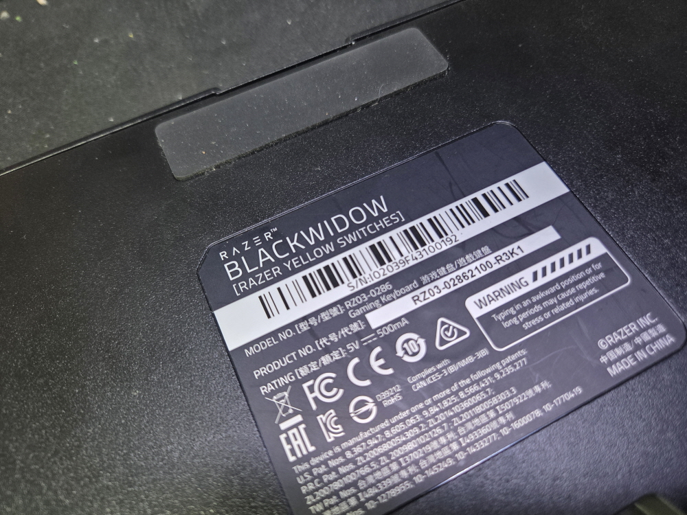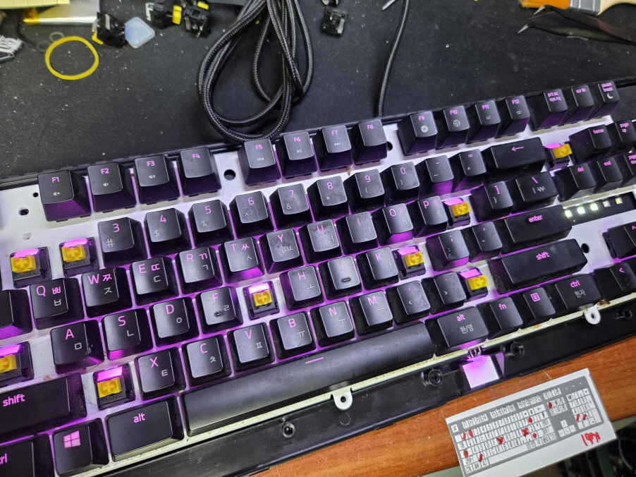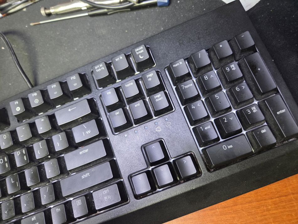 서울 영등포구에서 키 눌러지는데 잘 안됨 여러번눌림으로 택배입고된 Razer Blackwidow RZ03-0286 레이저키보드 해외직구 사설 수리 고장 AS