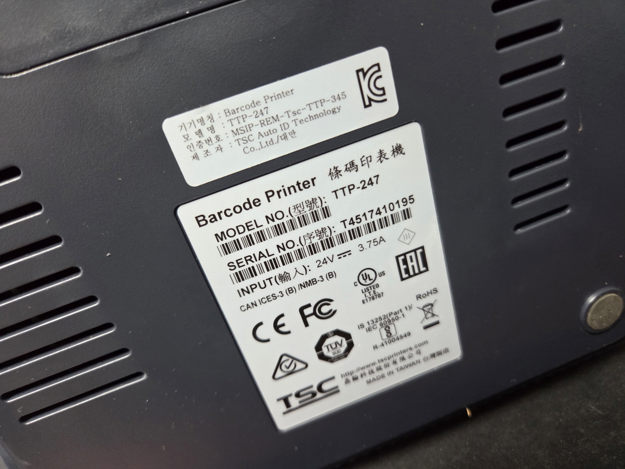 인천 남동구에서 리본흘러내림으로 택배 입고된 TSC TTP-247 유통 라벨 송장 바코드 프린터수리
