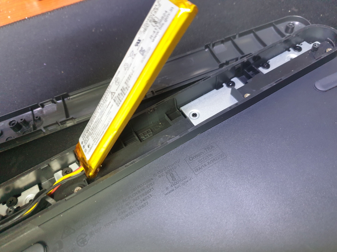 R 방향키(좌) 키 불량으로 수리 진행합니다. 추가로 방향키(상) 동일한 불량으로 수리 진행합니다. 제품을 들거나 흔들면 둔탁한 소리로 배터리 접착력이 약해 떨어진 소리로 고정하여 마무리합니다...