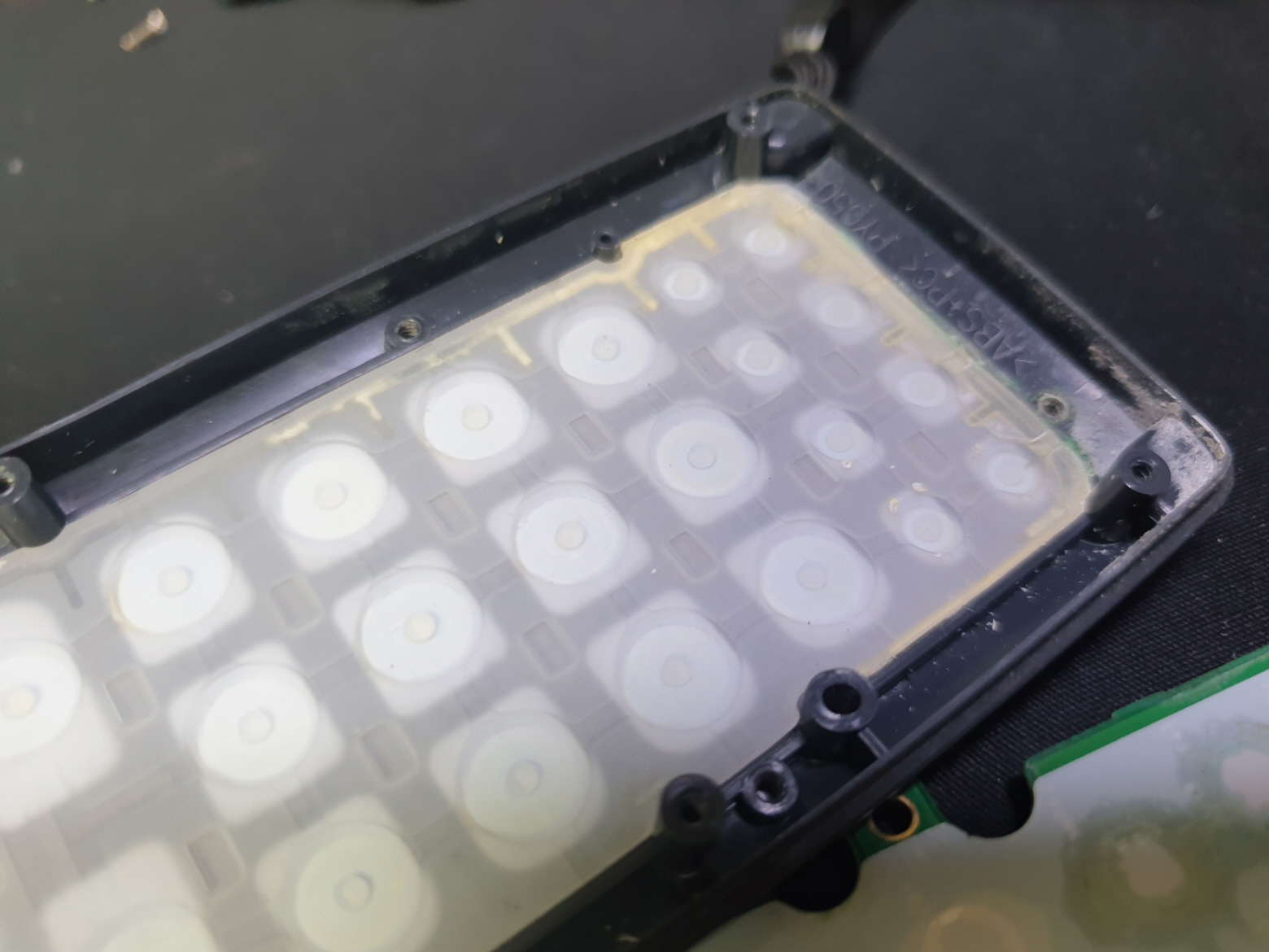 배터리 누액으로 인해 키PCB(기판) 부분이 부식되어 버튼이 눌리지 않는 증상으로 수리 진행합니다.