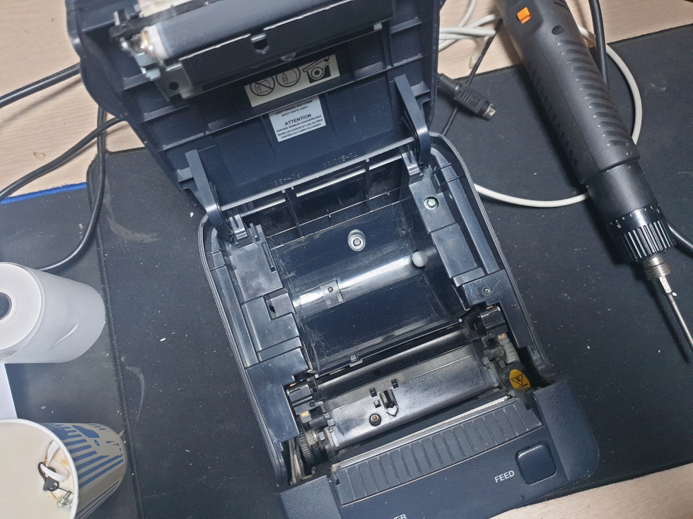 간헐적으로 출력후 용지가 절단되지 않는 문제로 수리 진행합니다.