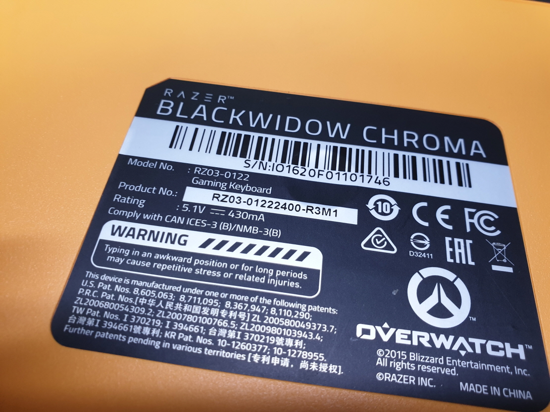 충남 아산에서 채터링으로 RAZER 블랙위도우 크로마 RZ03-0122 병행수입 직구 사설 수리 고장 AS