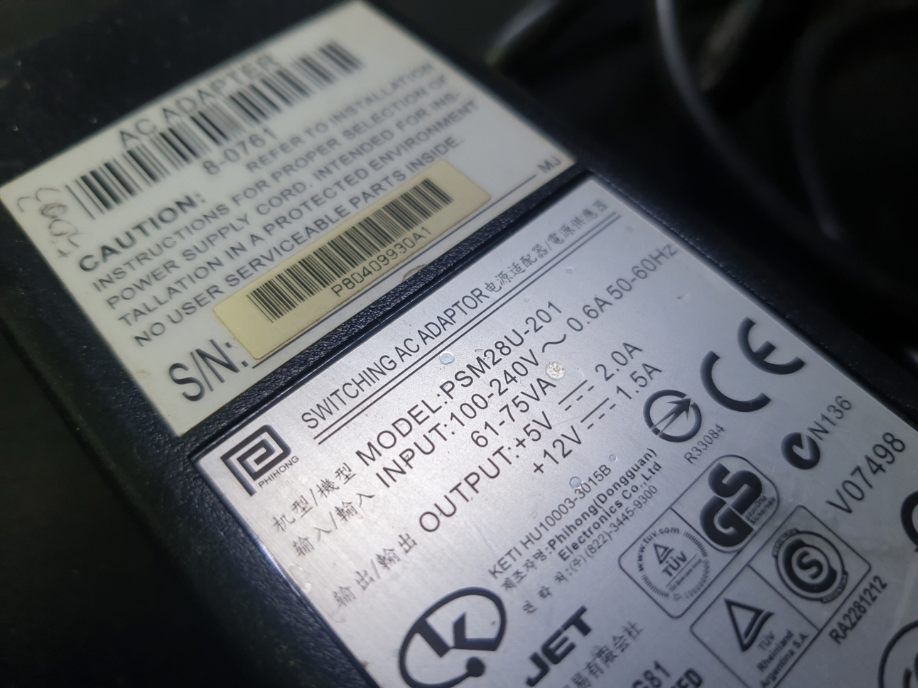 어댑터수리요청으로 수리 진행합니다. 어댑터 불량일경우 바코드전원이 안들어오거나 바코드LED녹색부분이 희미하게 깜박이며 스캔이안되는 증상 레이져가 안나오는 증상 등 어댑터불량으로 여러증상이 나타날 수 있습니다.