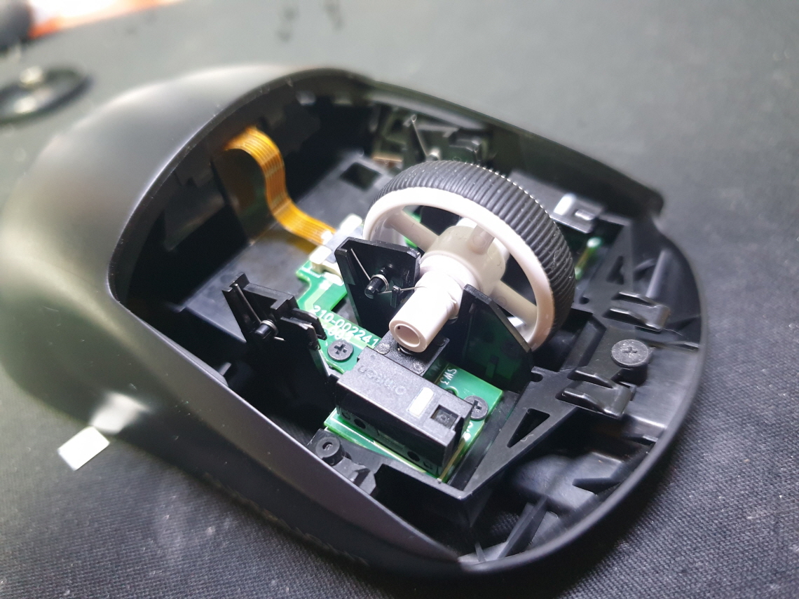 휠센서불량으로 휠센서교체수리 진행합니다. 휠센서불량은 휠팅김, 스크롤시 위아래로 잘 안움직이거나 아예 반응이 없는 경우 발생되는 현상이며 센서교체후 정상적인 사용이 가능합니다.