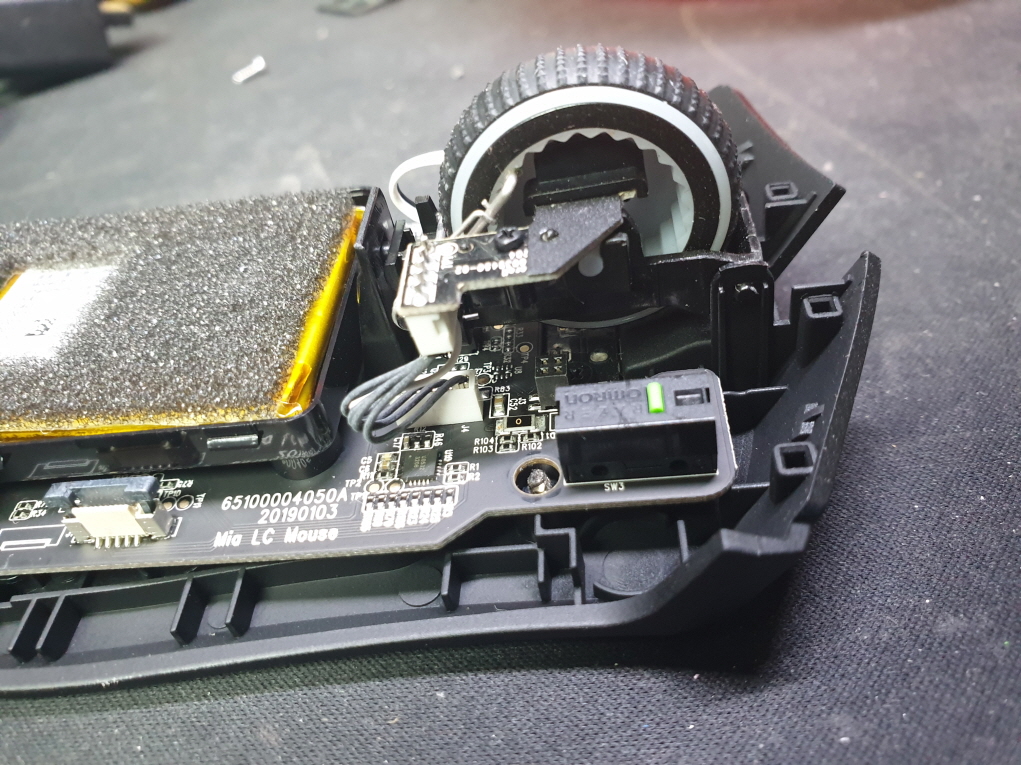 휠센서불량으로 휠센서교체수리 진행합니다. 휠센서불량은 휠팅김, 스크롤시 위아래로 잘 안움직이거나 아예 반응이 없는 경우 발생되는 현상이며 센서교체후 정상적인 사용이 가능합니다.