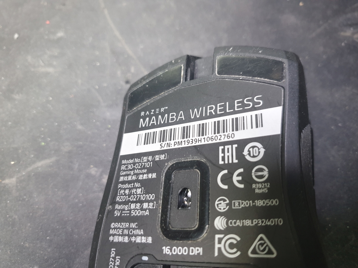 전남 담양군에서 드래그풀림으로 Razer MAMBA RC30-027101 레이저 맘바 마우스 병행수입 직구 사설 수리 고장 AS