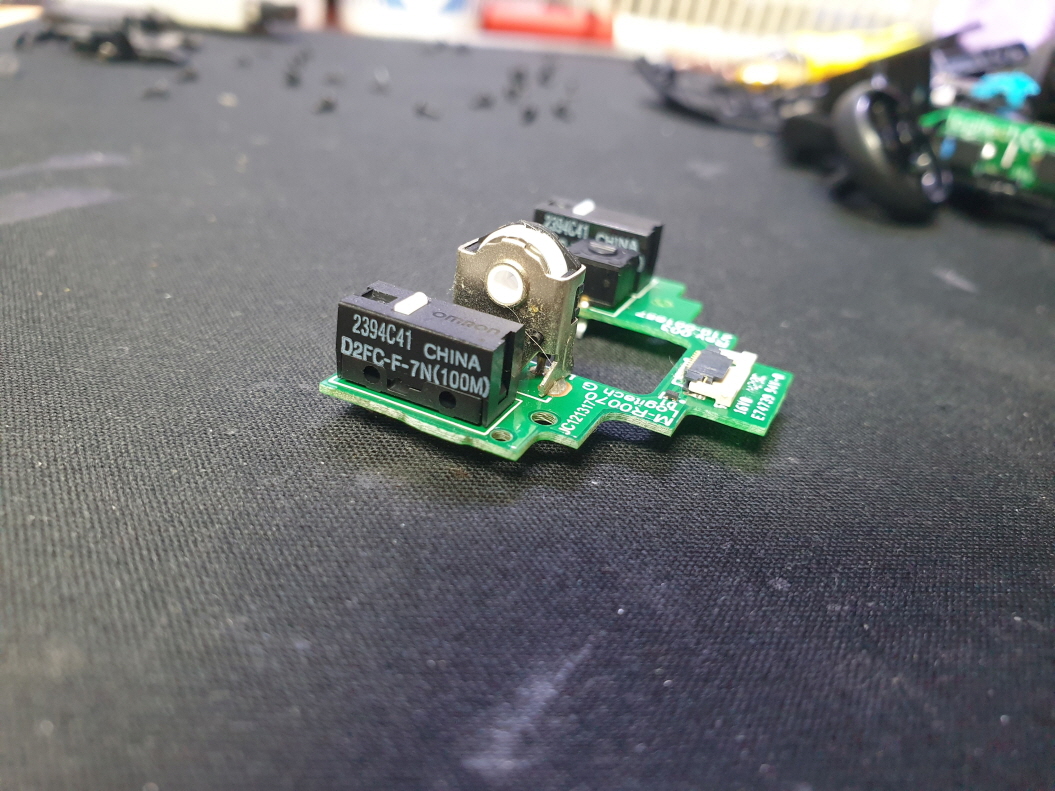 단순 스위치 불량으로 새 스위치 D2FC-F-7N(100M) 좌우교체 수리 진행합니다. 추가로 앞으로가기버튼 더블클릭으로 동일한 앞뒤스위치로 교체진행합니다.