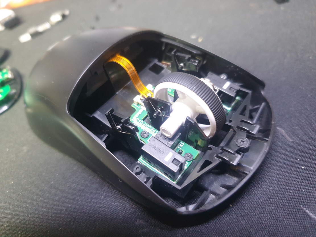 휠센서불량으로 휠센서교체수리 진행합니다. 휠센서불량은 휠팅김, 스크롤시 위아래로 잘 안움직이거나 아예 반응이 없는 경우 발생되는 현상이며 센서교체후 정상적인 사용이 가능합니다.