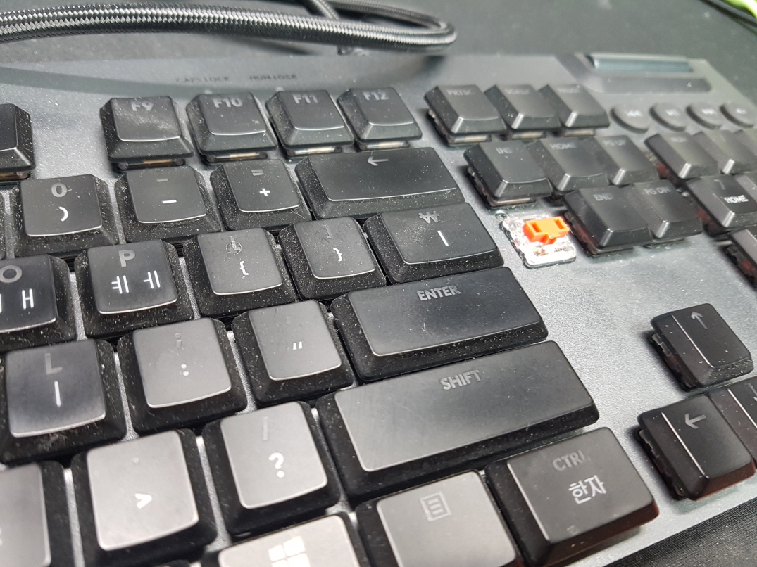 기계적으로 눌리지만 컴퓨터에선 눌리는 반응이 있는듯 없는듯하며 아예 안눌리거나 여러번 눌리는 증상은