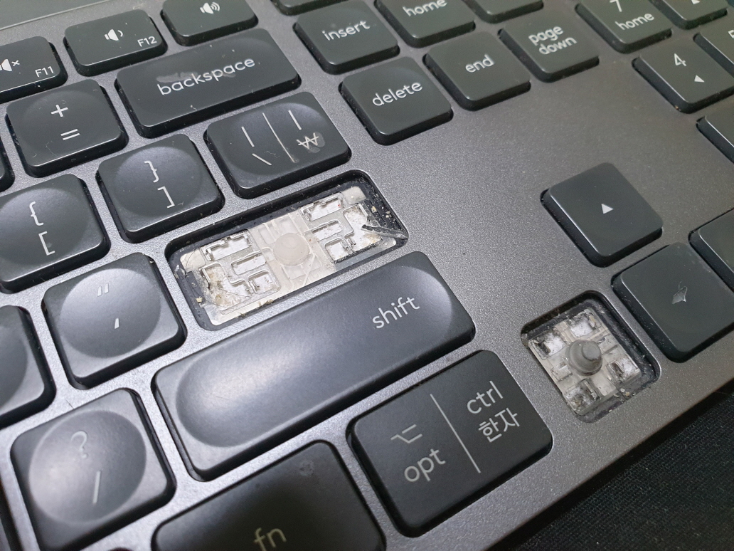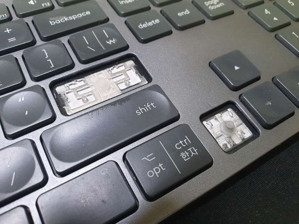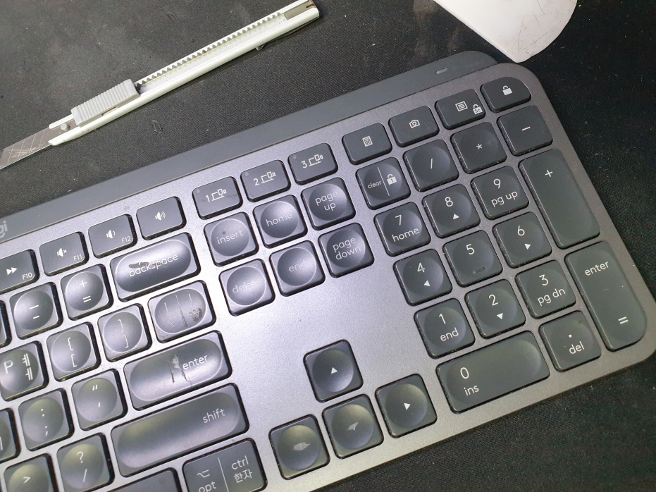 충북 청주에서 키버튼손상으로 Logitech MX KEYS 로지텍키보드 펜타그래프 병행수입 직구 사설 수리 고장 AS