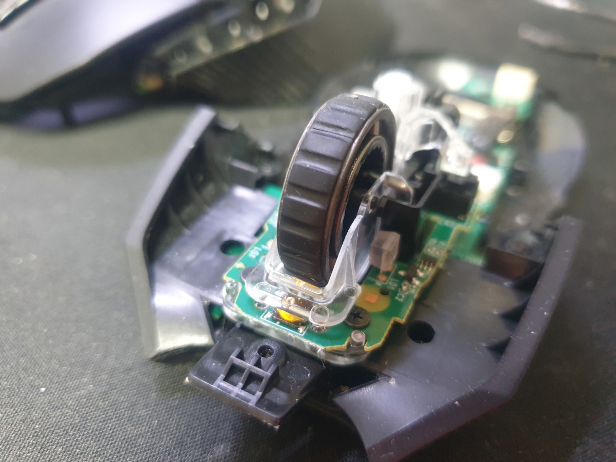 고객님께서 "마우스 휠버튼고장 무한휠만 계속되고 뻑뻑하게 돌아가는게 안됨" 으로 수리요청해주셨습니다.