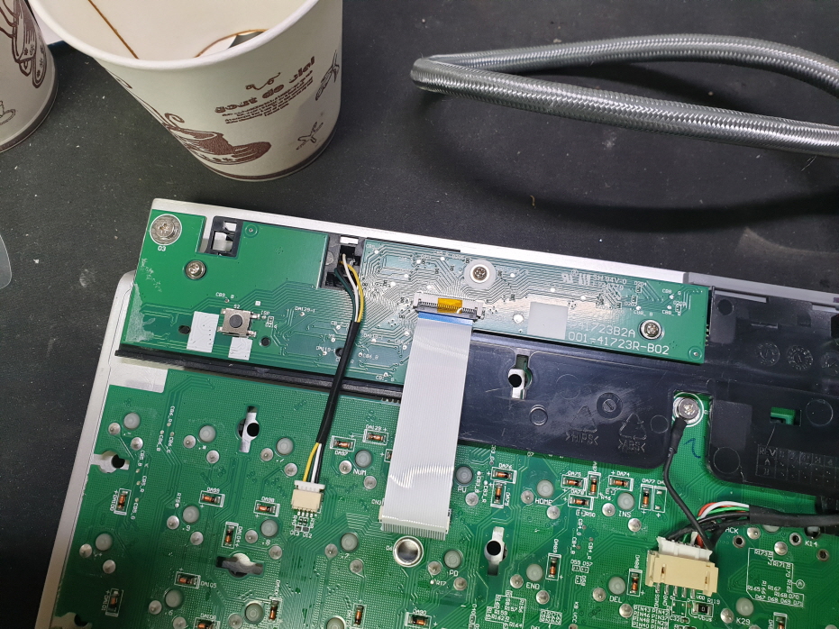 키패드쪽침수된듯하며, 키보드연결시 빠른점멸 눌림증상으로 초음파세척 및 UV살균건조로 깔끔히 수리 진행합니다.