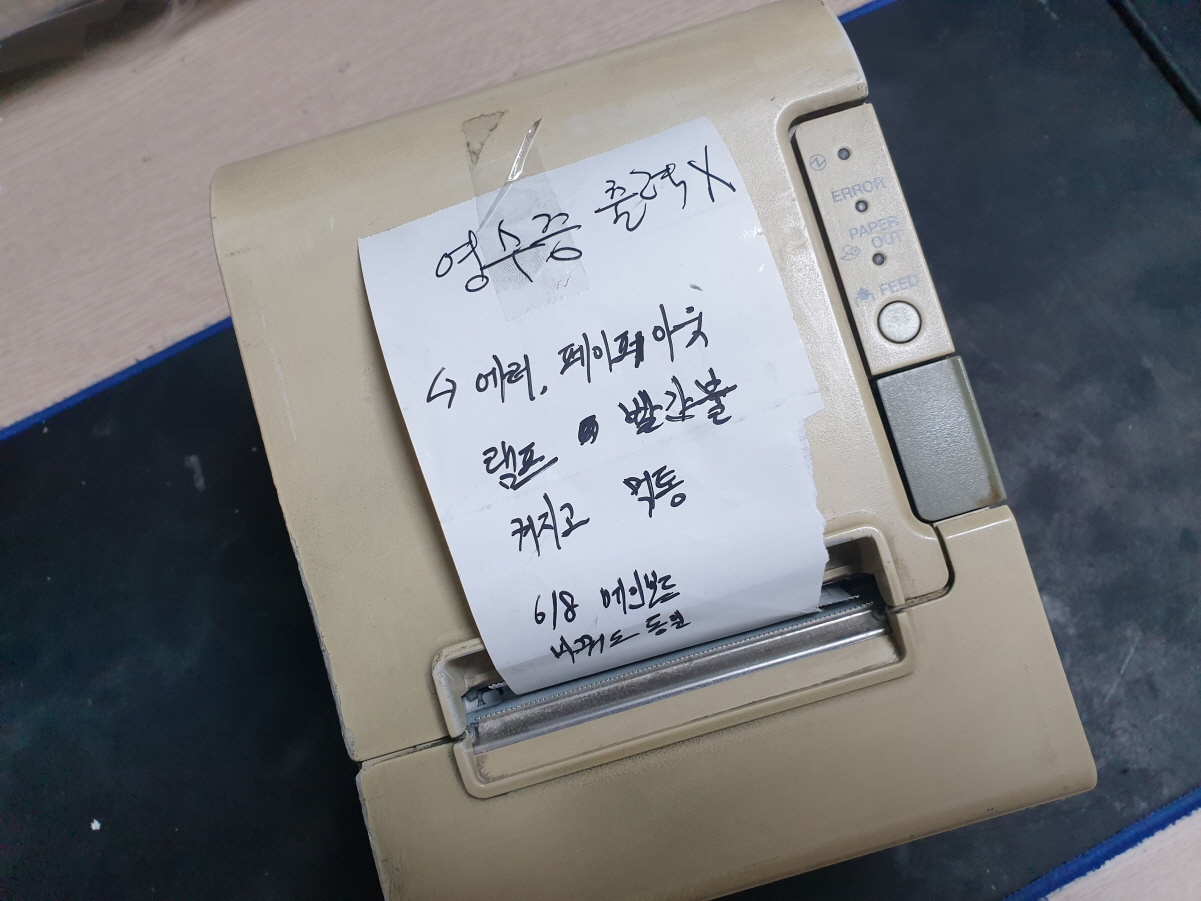 서울 영등포구에서 에러,페이퍼아웃램프 빨간불켜지고 먹통으로 Epson TM-T88IV 포스 엡손프린터 사설 수리 고장 AS