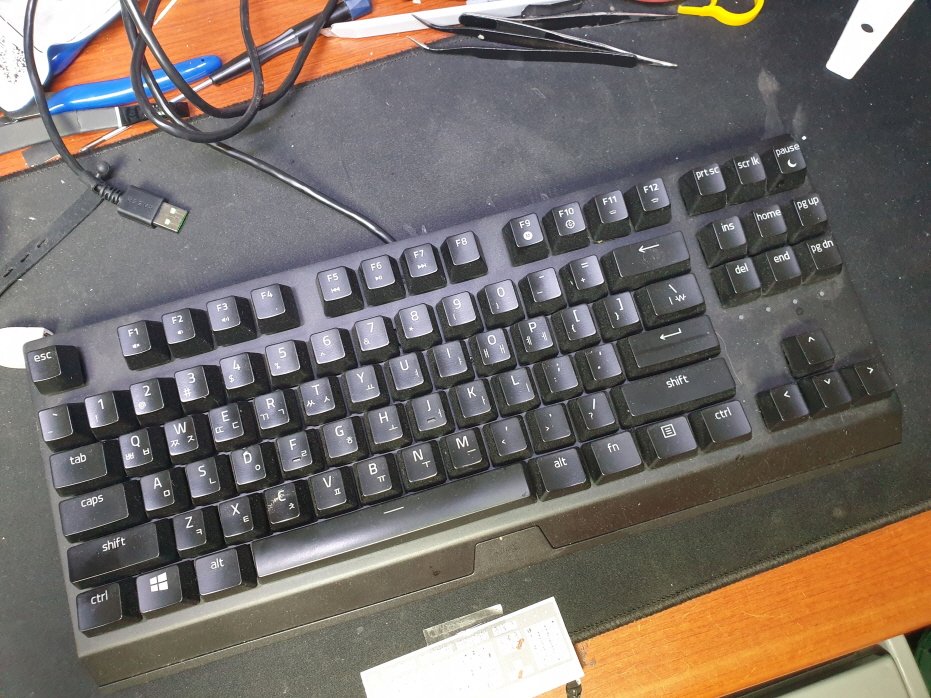 경기도 부천에서 씹히거나 두번눌림으로 Razer Blackwidow V3 Tenkeyless RZ03-0349 레이저 해외직구 사설 수리 고장 AS