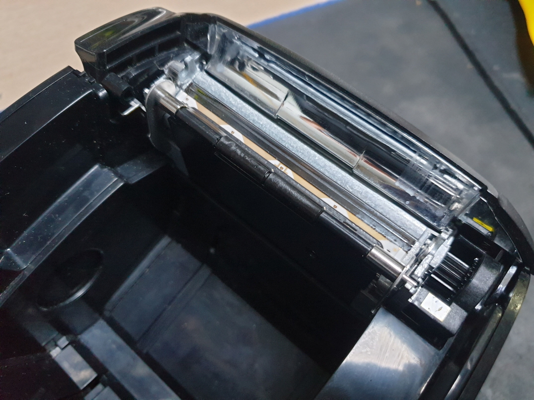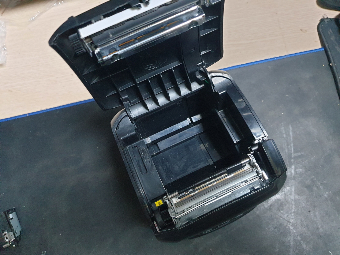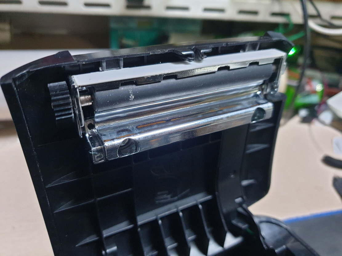 흐리게 인쇄되는 문제로 메카 교체 진행합니다. 메카는 인쇄헤드+커터+모터로 구성되어 있습니다.