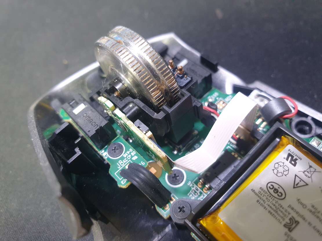 휠센서불량으로 휠센서교체수리 진행합니다. 휠센서불량은 휠팅김, 스크롤시 위아래로 잘 안움직이거나 아예 반응이 없는 경우 발생되는 현상이며 센서교체후 정상적인 사용이 가능합니다.