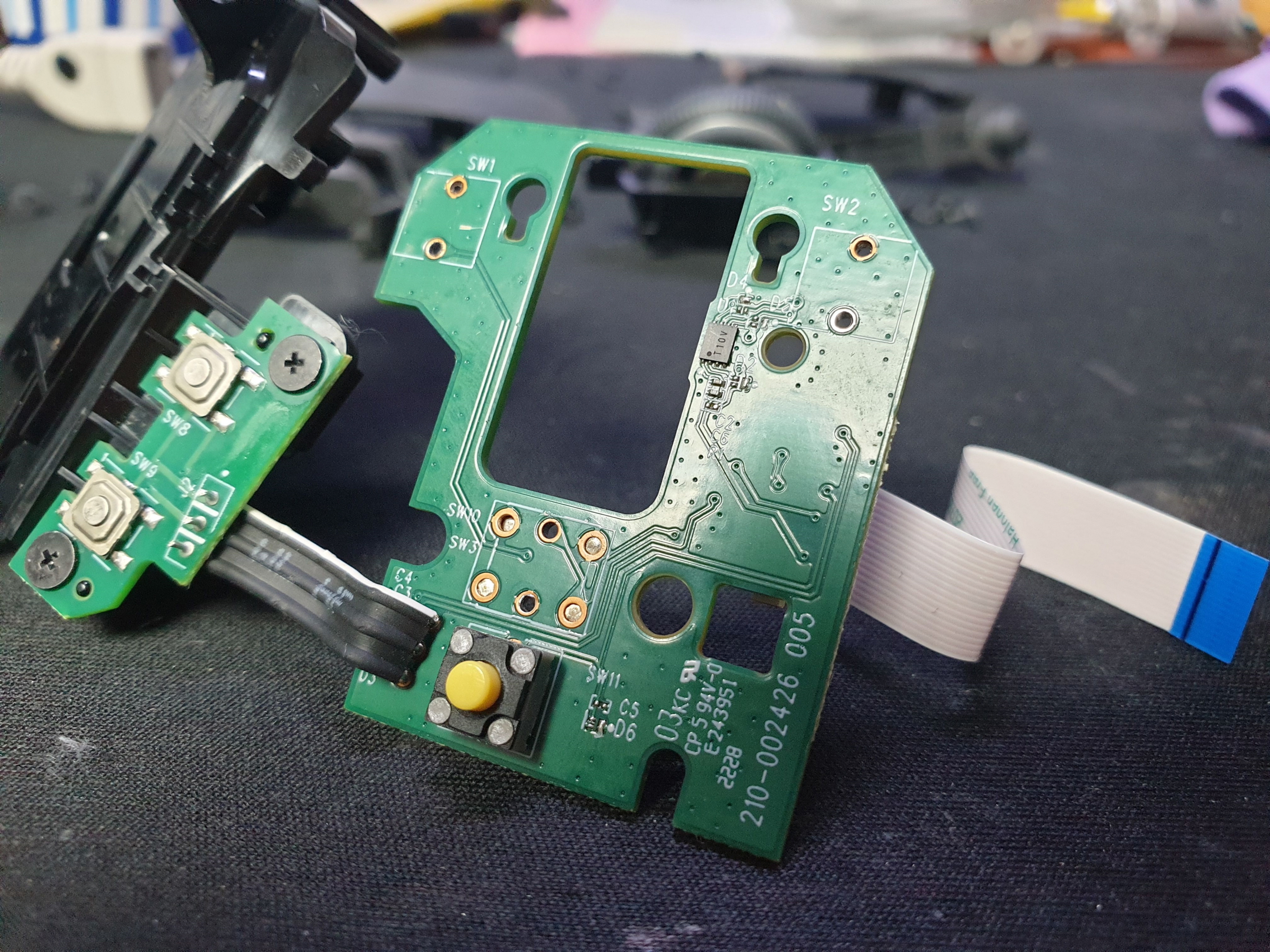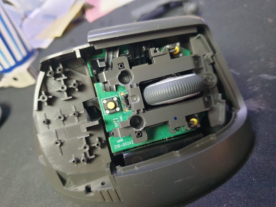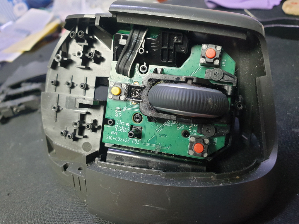 단순 스위치 불량으로 새 스위치 카일 옐로우축 좌우교체 수리 진행합니다. 추가로 휠버튼(스위치) 씹힘으로 같이 교체 수리 진행합니다.