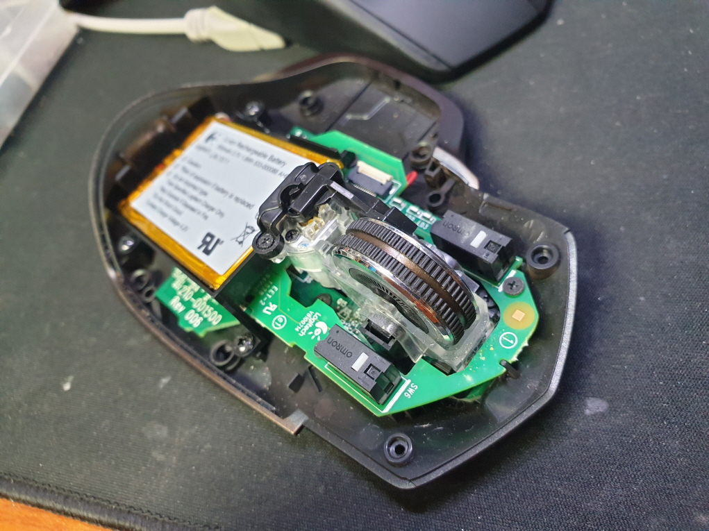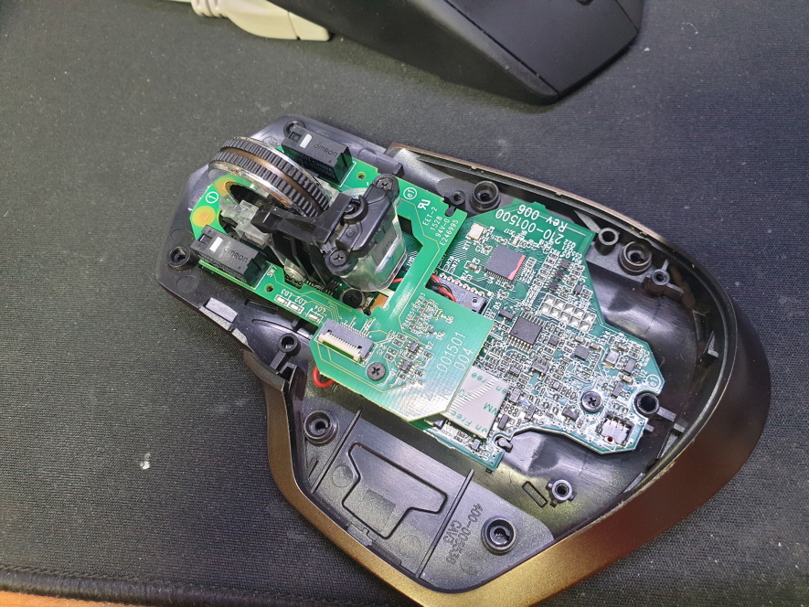 다른 버튼 및 스크롤 휠작동은 정상적으로 잘 작동하지만 마우스포인트 커서가 움직이지 않는 문제로 수리 진행합니다.