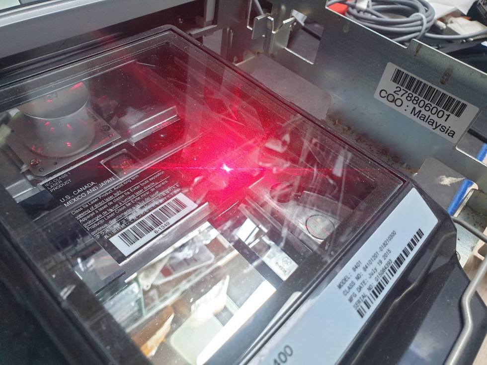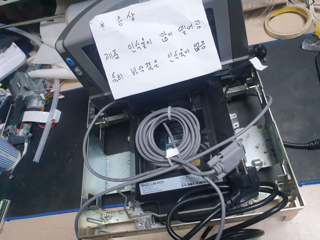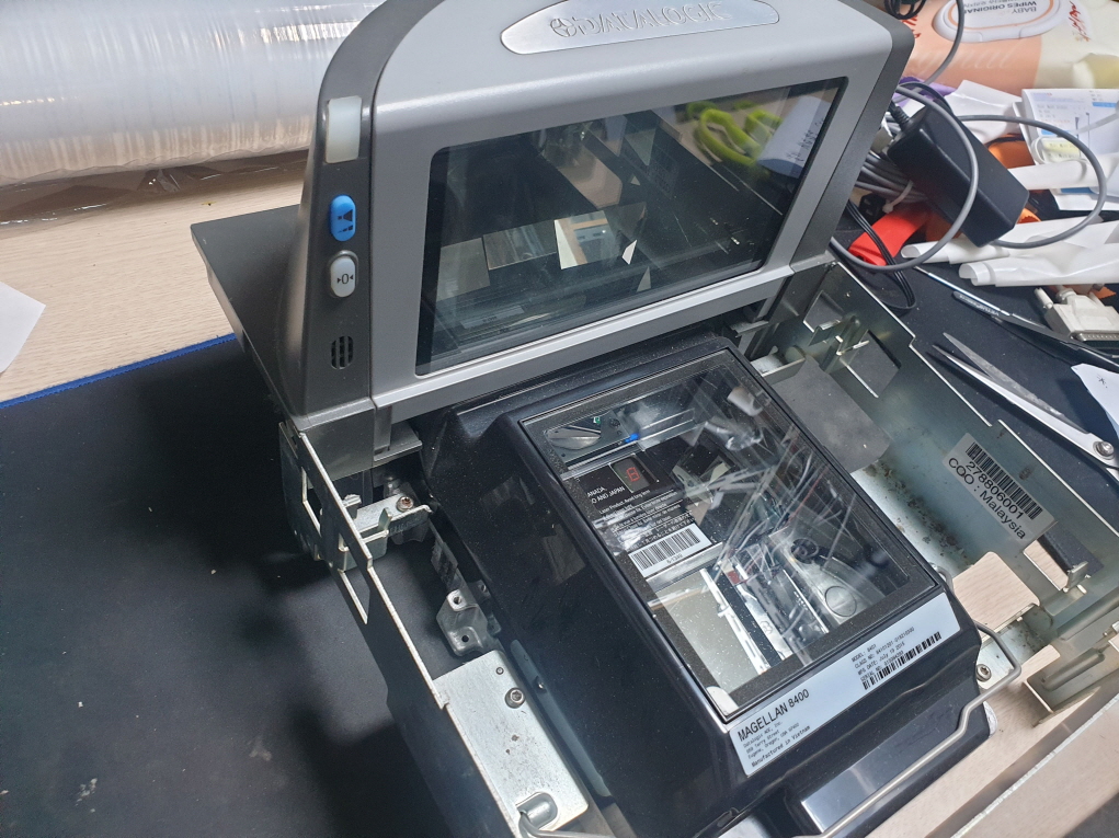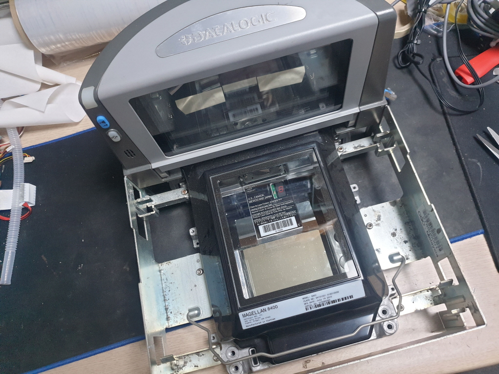 대전 서구에서 바코드스캔안됨으로 Datalogic Magellan8400 데이터로직 마젤란8400 매립형 평판 바코드 스캐너수리