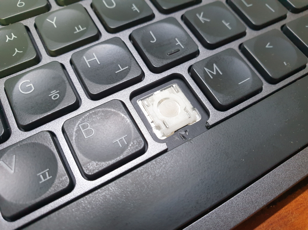 고객님께서 "N 키 힌지 메인보드걸쇠파손 걸쇠는 흡짐이 있으나 힌지 걸리는데이는 문제없을것같음 V키 사용시 문제는 없으나 일부분 파손된것같아 같이 바꾸고 싶음"으로 수리요청해주셨습니다.