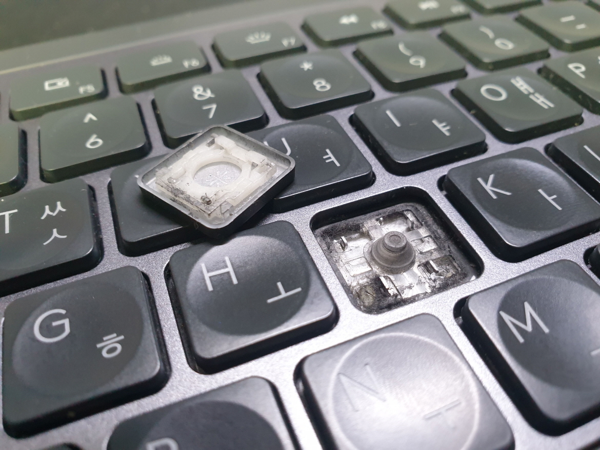 J 키 불량으로 수리 진행합니다. 추가로 A키도 함께 수리 진행합니다.