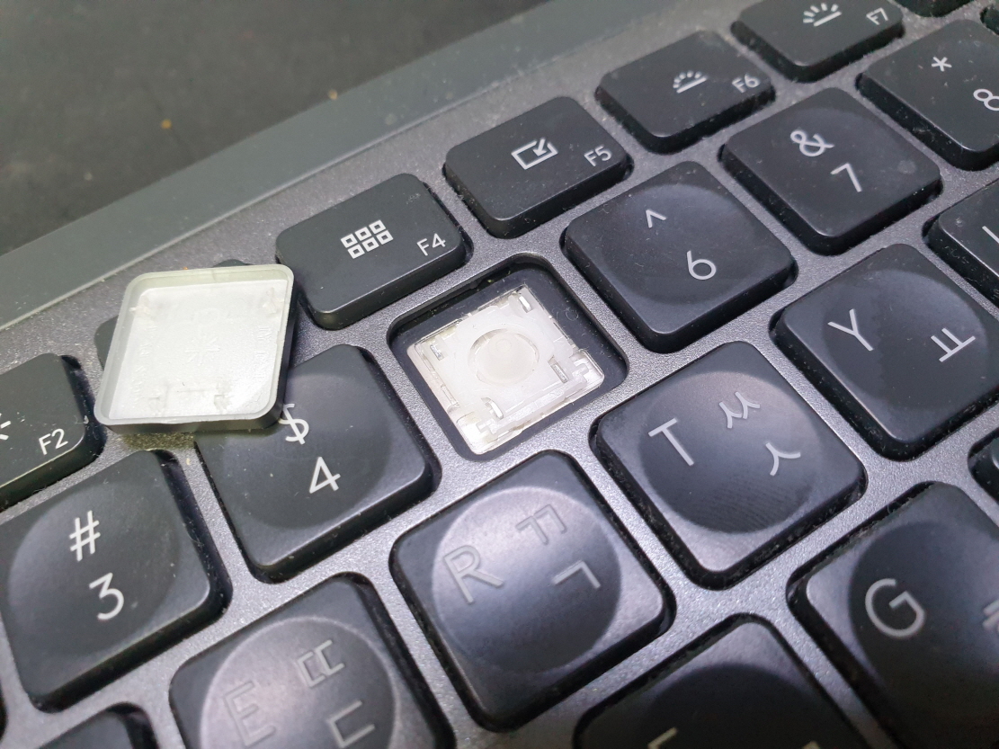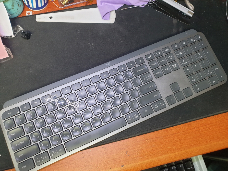 경기도 안양에서 키캡 빠짐파손벚겨짐으로 Logitech MX KEYS 로지텍키보드 펜타그래프 병행수입 직구 사설 수리 고장 AS