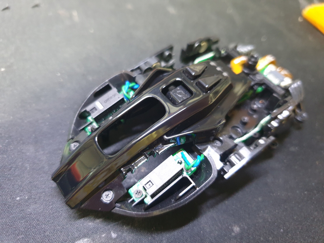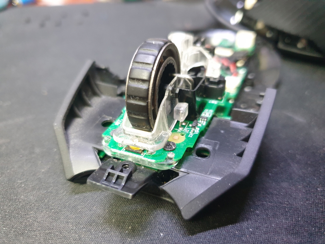 휠센서불량으로 휠센서교체수리 진행합니다. 휠센서불량은 휠팅김, 스크롤시 위아래로 잘 안움직이거나 아예 반응이 없는 경우 발생되는 현상이며 센서교체후 정상적인 사용이 가능합니다.