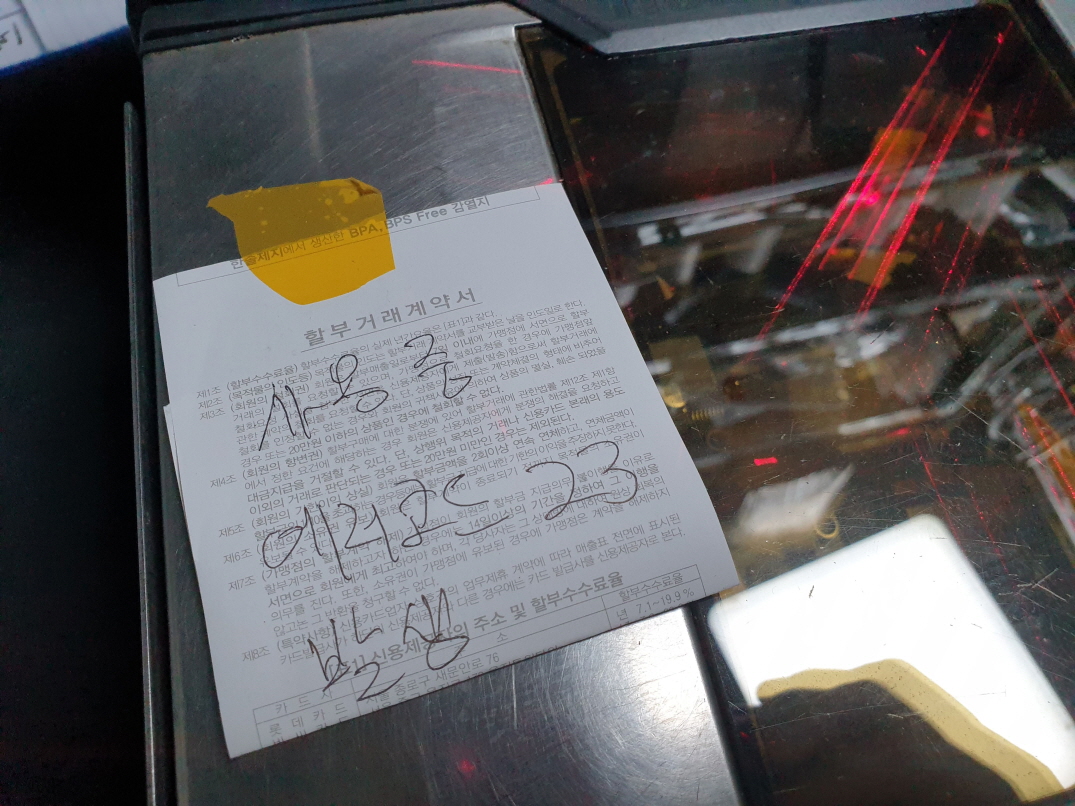 사용중 23번 에러코드 뜨는 문제로 수리 진행합니다. 에러코드가 뜨는 경우 사용상 문제가 없는 경우도 있지만 심한 경우 바코드스캔이 안되는 경우 멈춤는 경우 서브보드 전소되어 작동이 안되는 경우가 발생됩니다.