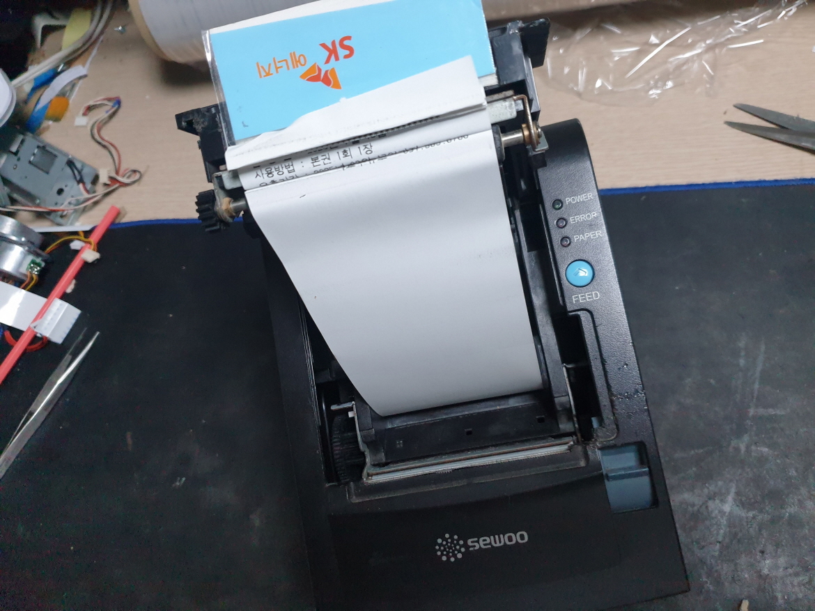 경기도 가평군에서 용지안나옴 용지말림으로 Sewoo LK-T201 포스 셀프주유소세우테크프린터 사설 수리 고장 AS